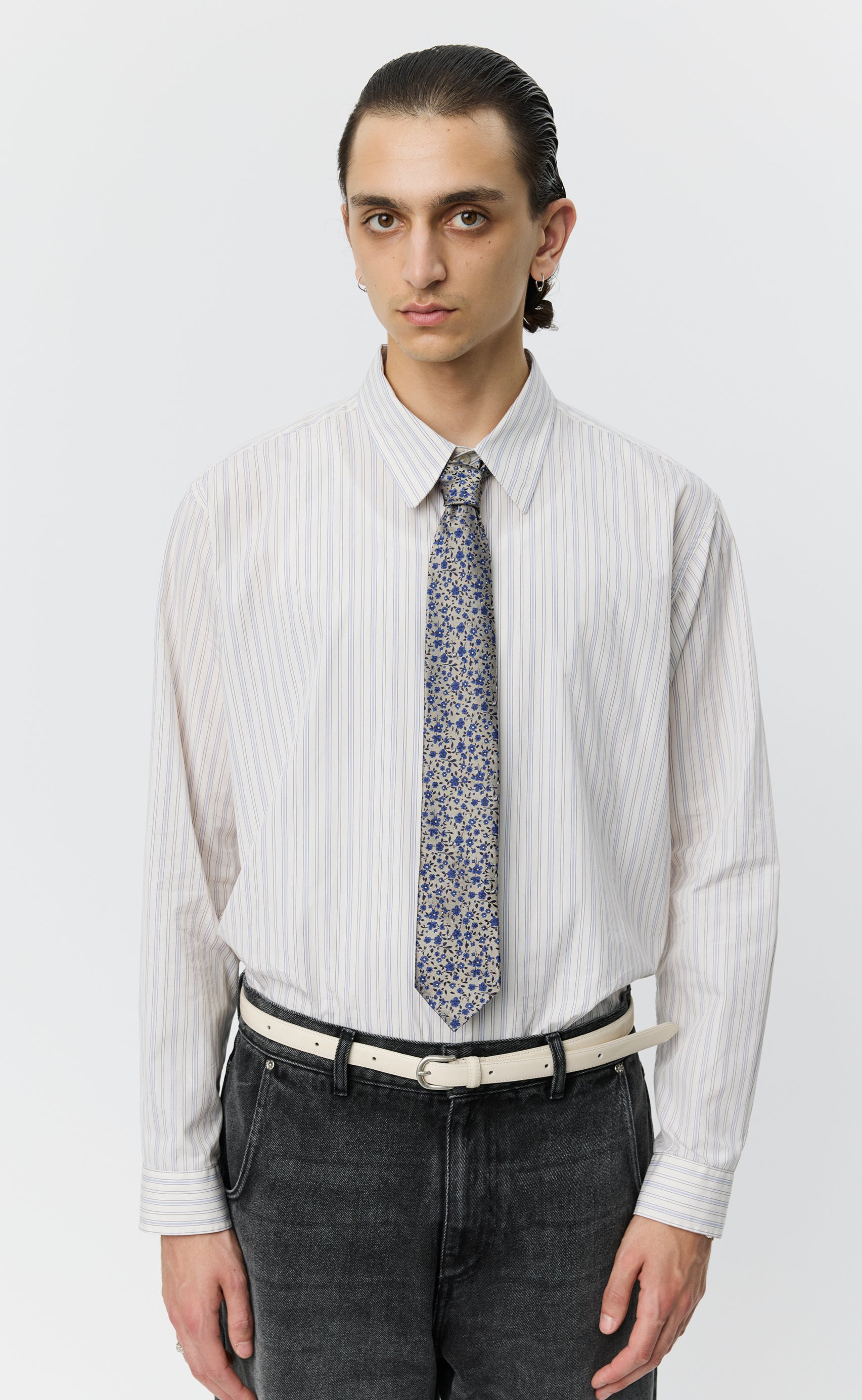 The Banquent Tie is woven from silk in Italy with a silver base and adorned with a rich blue floral pattern. Featuring a classic pointed tip.