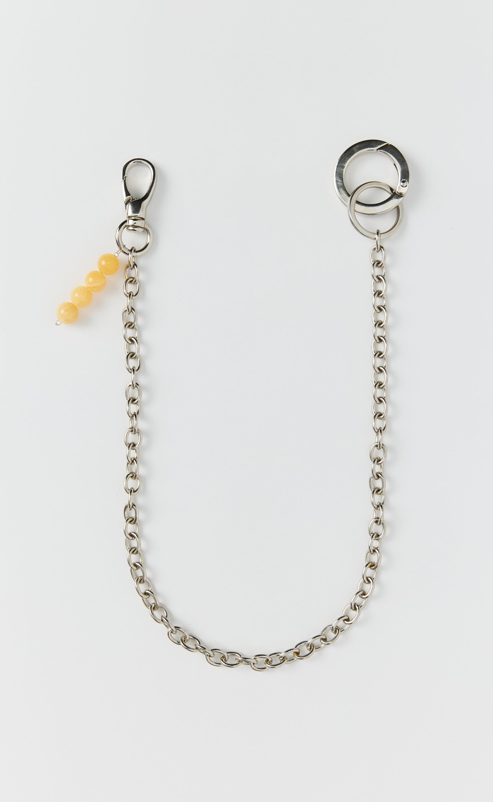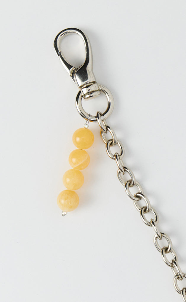 The Charm Property Chain has a full length of 53.5 cm. Featuring a solid brass clasp with beaded charm and split ring with solid brass circular keyring, on a solid zamak chain.