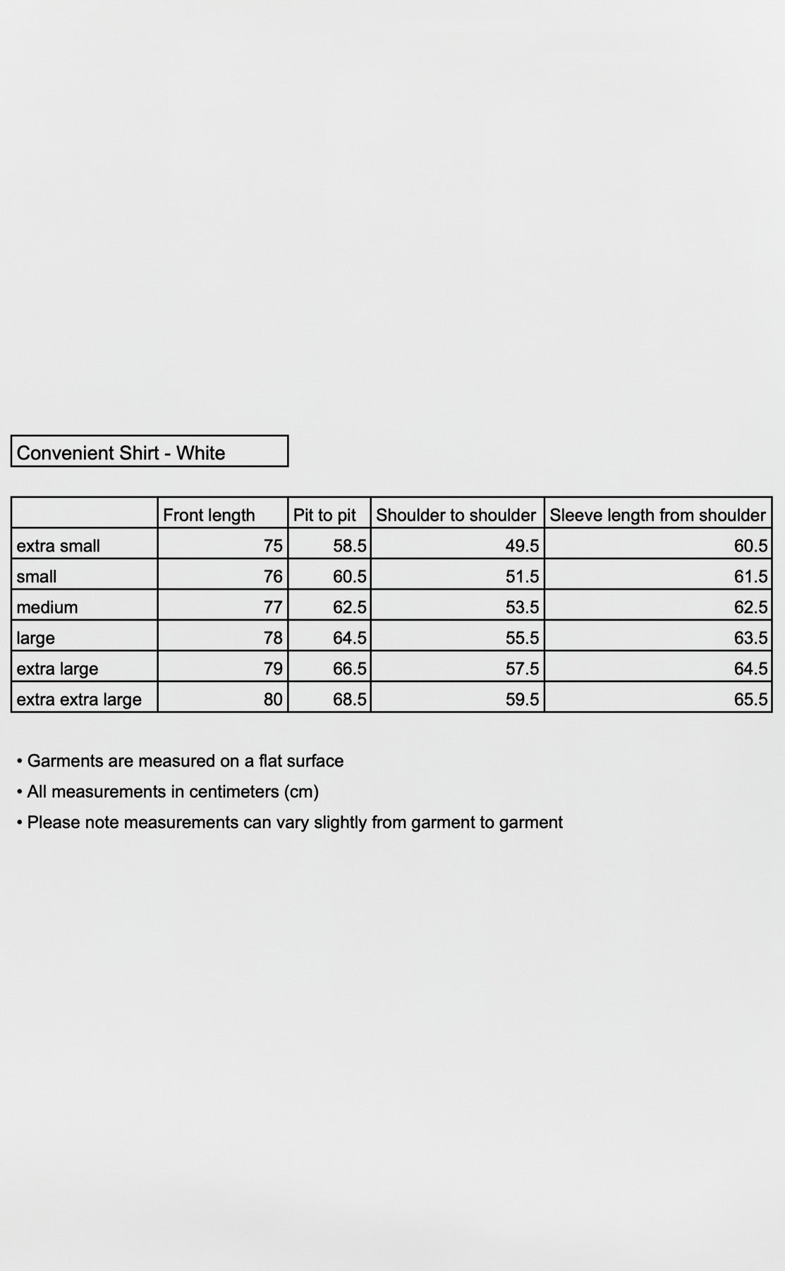The Convenient Shirt has a relaxed fit with drop shoulders and a rounded hem. Made with button placket, spread collar, back yoke pleats and a divided chest pocket. Cut from a garment washed, crisp organic cotton poplin in white.