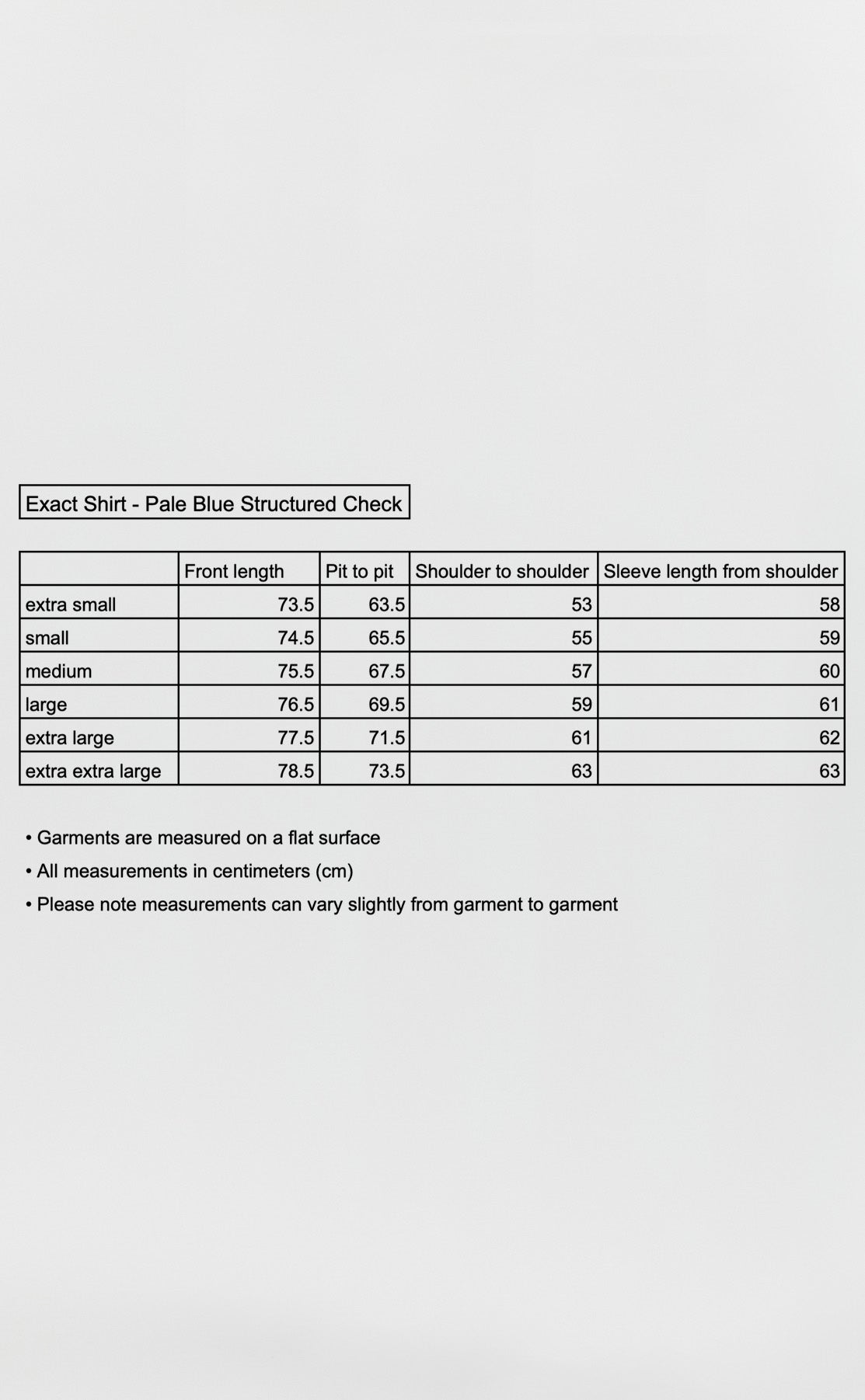 The Exact Shirt has an oversized fit with drop shoulders and a curved hem. Featuring a spread collar and clean front made without chest pocket and placket. Cut from a garment washed seersucker cotton blend with a pale blue and beige plaid on a grey blue ground.