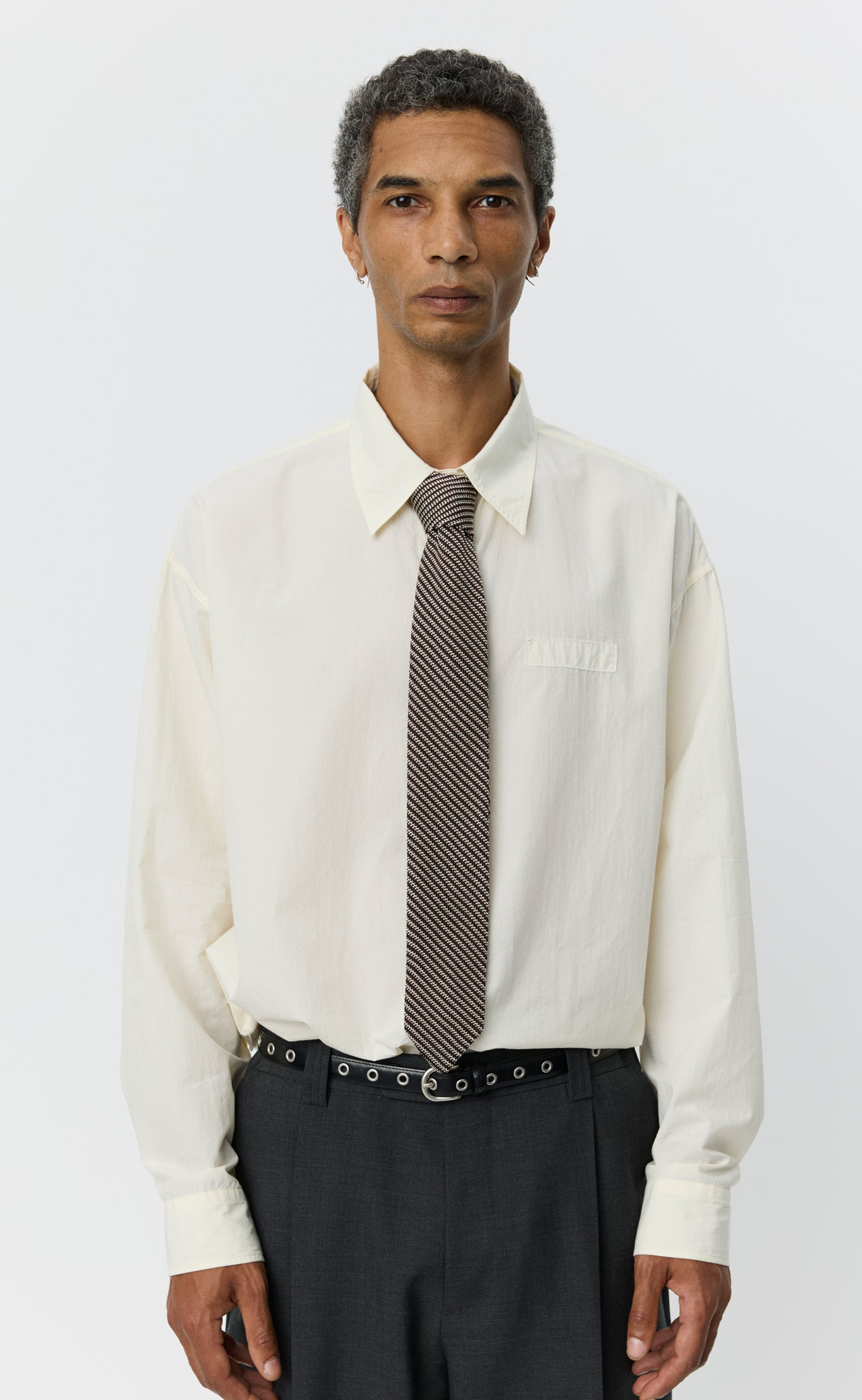 The Formal Tie is knitted from Italian silk with a diagonal two-tone stripe. Finished with a textured knit structure and a classic pointed tip.