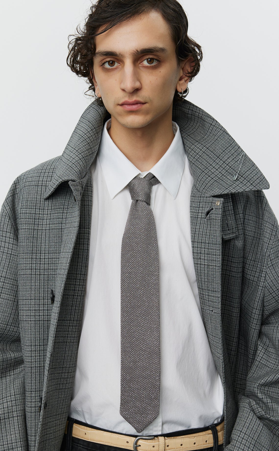 The Formal Tie is knitted in Italy from a silk blend with a subtle glitter effect on a silver grey ground.