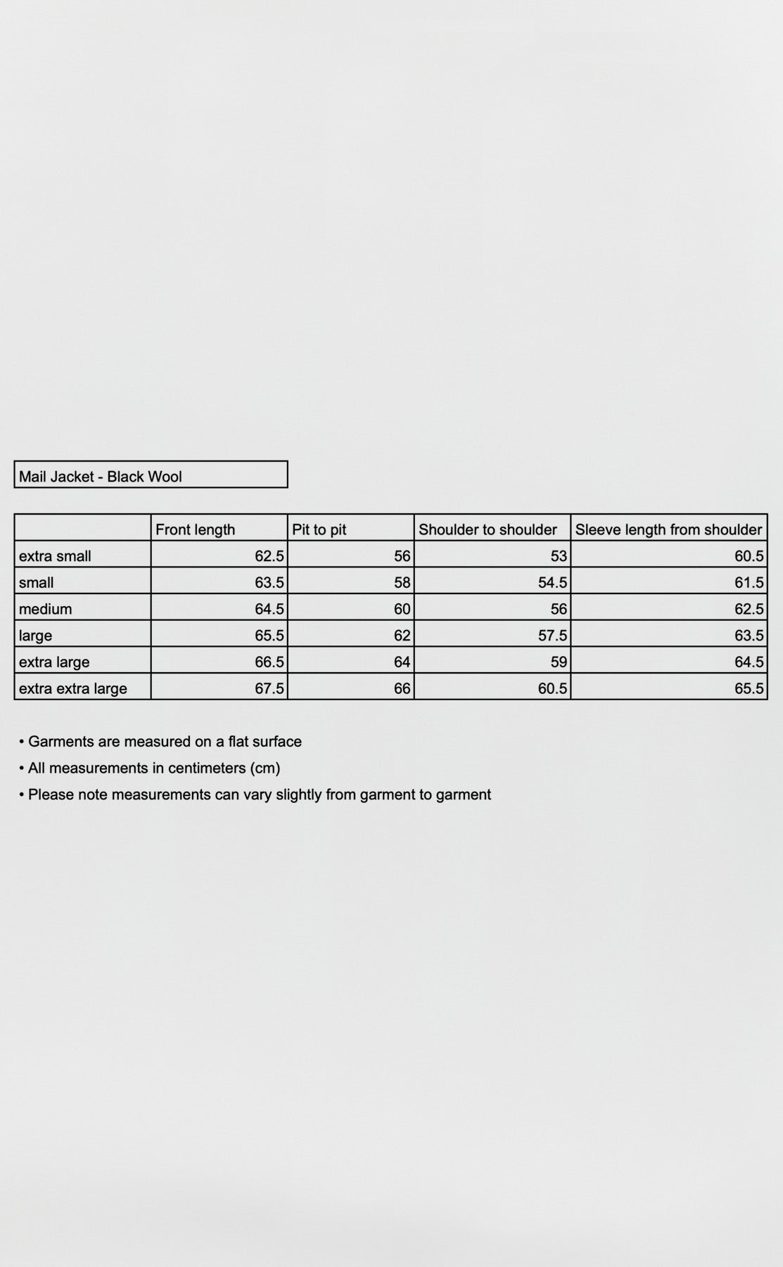 The Mail Jacket has a boxy fit with drop shoulders. Featuring two-way zip, side pockets, sleeve and front body lining and adjustable tabs at the waist. Cut from a lightweight, crisp tropical wool in black. Made in limited quantities from deadstock fabric, available exclusively on mfpen.com and in the Copenhagen mfpen Store.