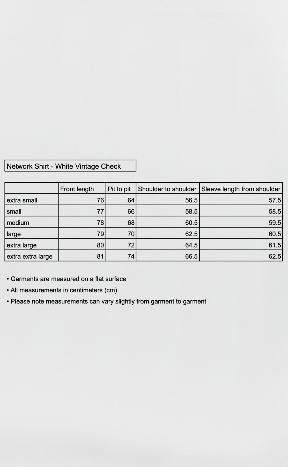 The Network Shirt has an oversized fit with drop shoulders and a rounded hem. Featuring a spread collar, back yoke pleats and clean front made without chest pocket and placket. Cut from a soft organic cotton in a light grey and black pinpoint tattersall check on a white ground.