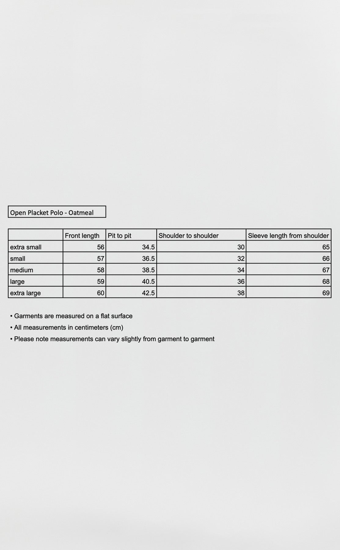 The Open Placket Polo has a slim fit with slightly drop shoulders. Featuring a spread collar, open placket and slits at the sleeve hems. Knitted from a grey beige fine merino wool yarn with a 4x2 rib knit throughout the body.
