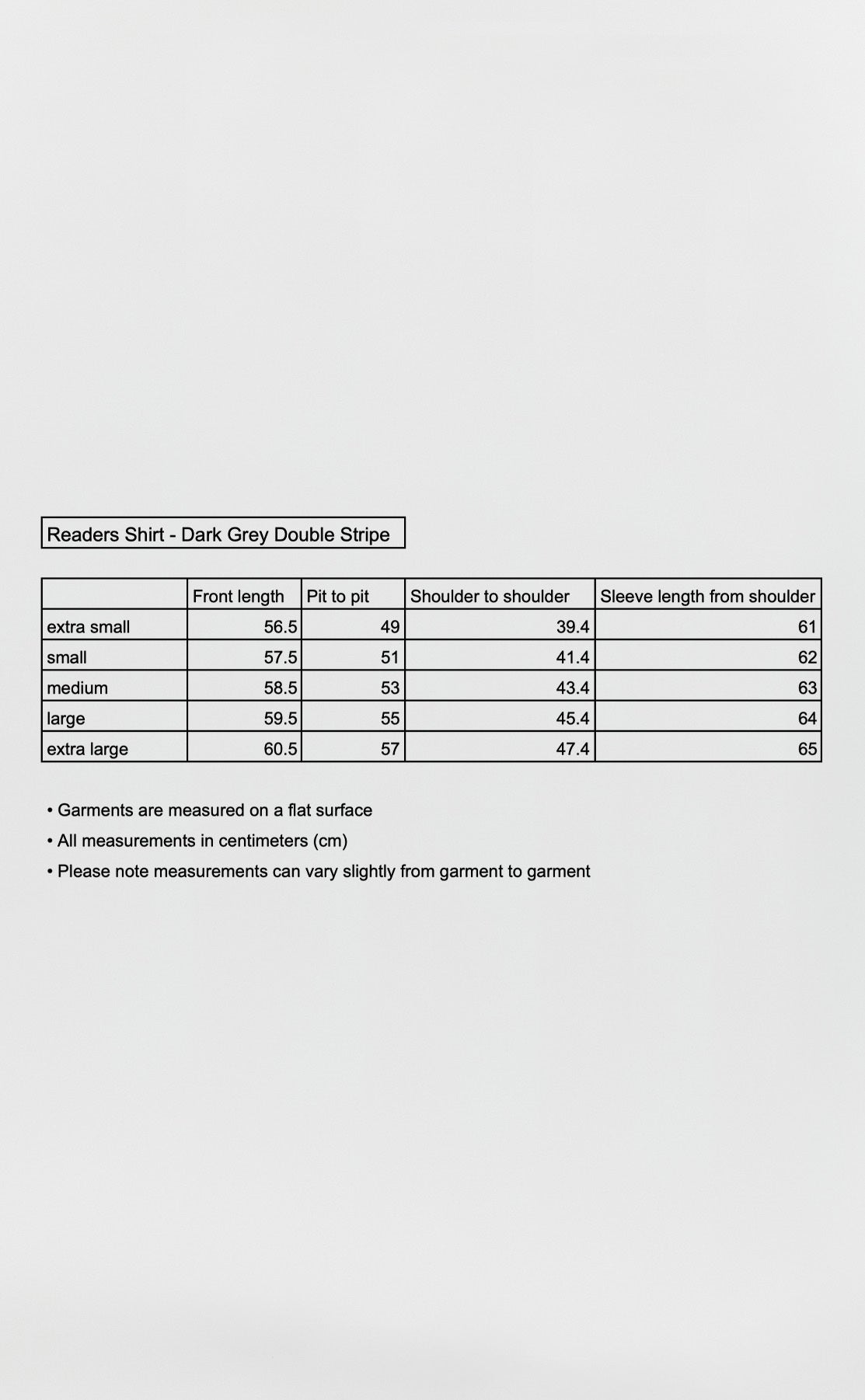 The Readers Shirt has a slim cropped fit with a curved hem. Featuring a button placket, spread collar, back yoke and contour panels at front and back. Cut from a smooth, lightweight cotton in a white multi stripe on a dark grey ground.