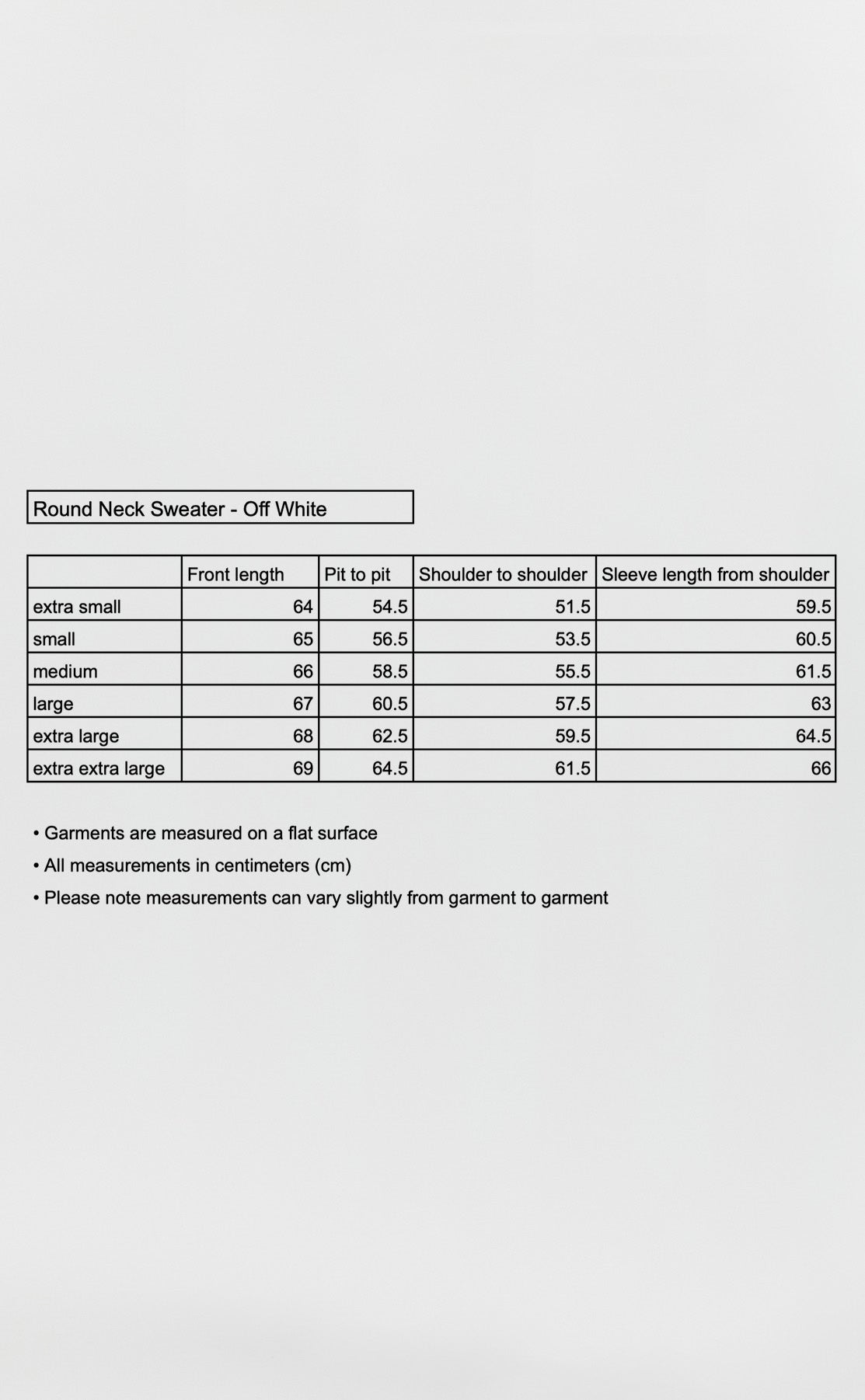The Round Neck Sweater has a boxy fit with long sleeves and drop shoulders. Featuring reversed flatlock seams at sleeves and side seams. Cut from a soft organic cotton with a semi-sheer horizontal tonal stripe in bone white.
