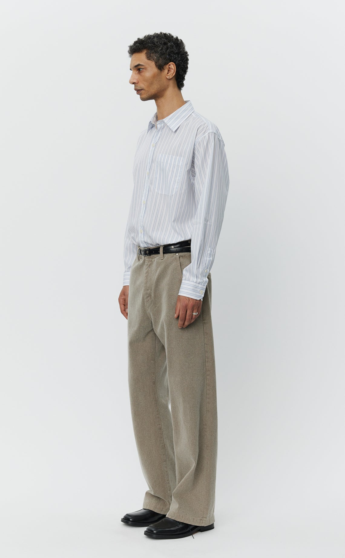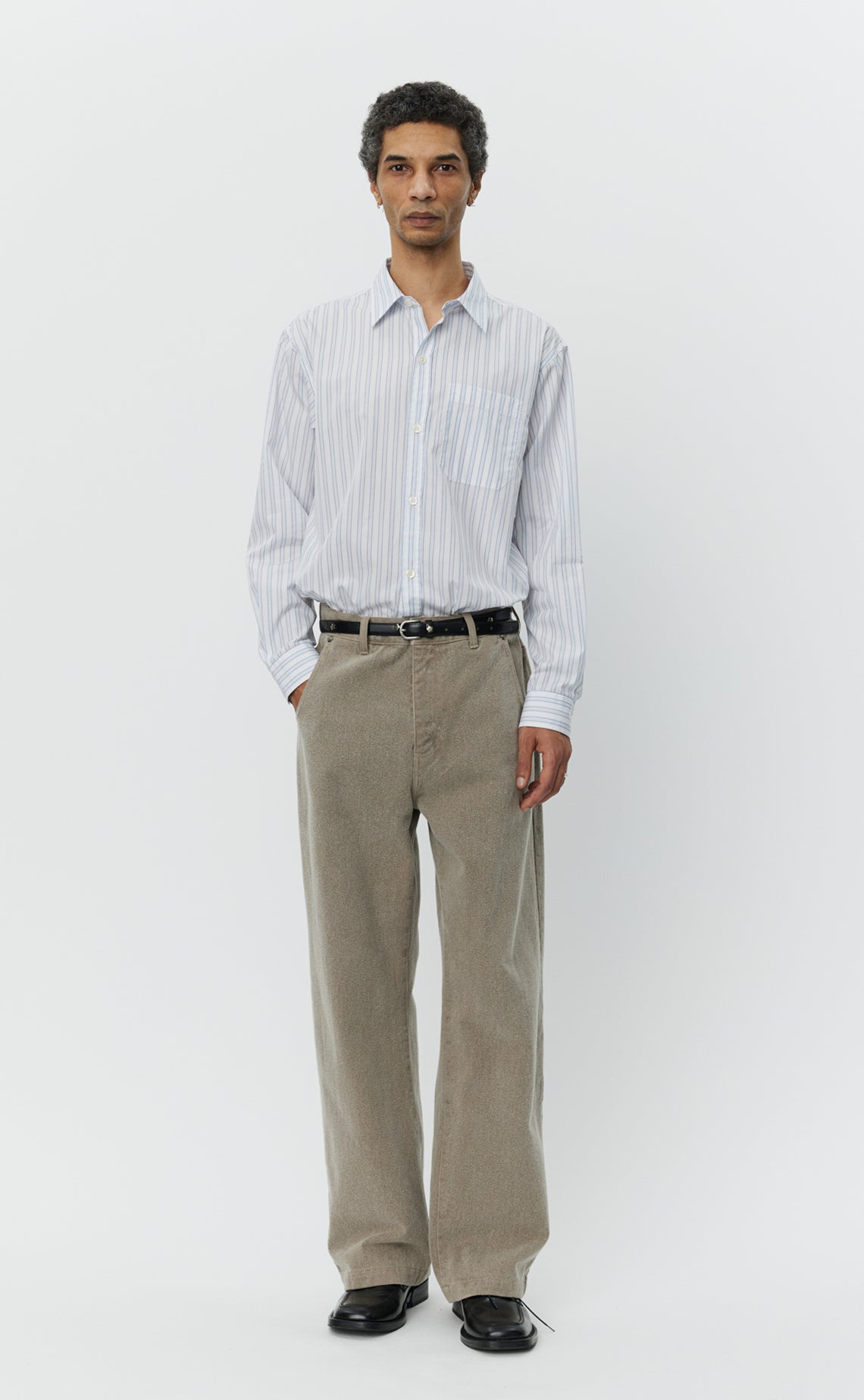 The Straight Cut Jeans has a relaxed straight fit with a mid-rise. Featuring side pockets, rear patch pockets, flower rivets, metal button closure and YKK zip fly. Cut from a soft mineral dye washed organic cotton denim with a brushed surface in a light brown.
